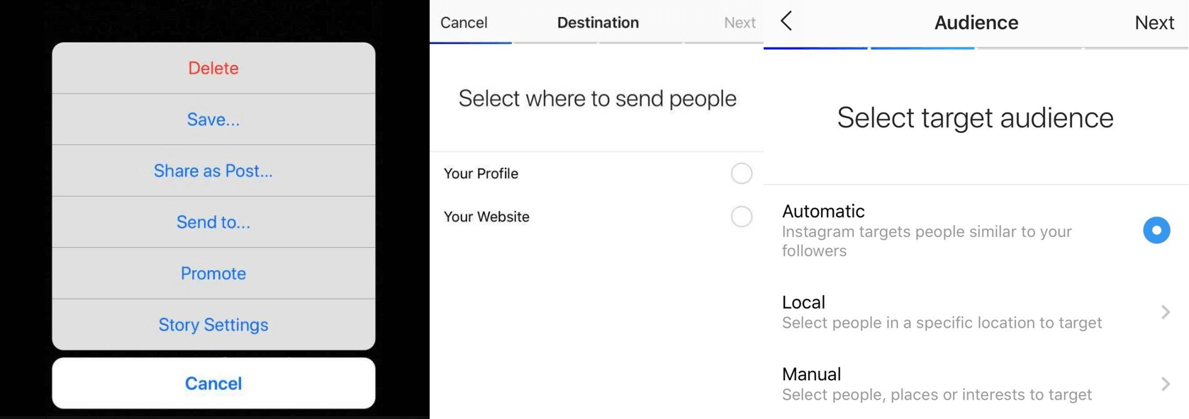 Новый формат Promote Ads для «историй» работает аналогично кнопке «Продвигать» в Facebook. Функция позволяет быстро делать «истории» рекламными и настраивать таргетинг: посты можно автоматически таргетировать на аккаунты, похожие на подписчиков, жителей определенных городов и другие категории пользователей. В объявление можно добавить ссылку на сайт или Instagram-аккаунт компании.